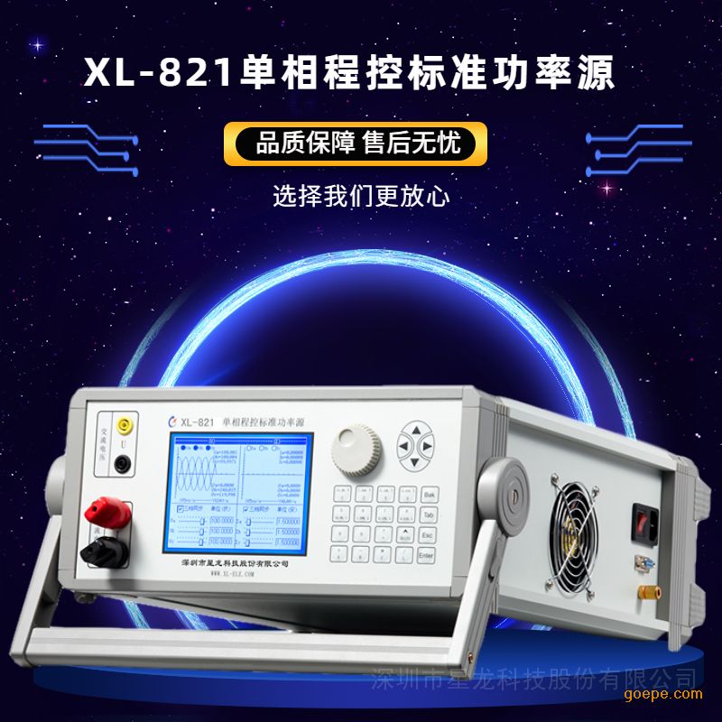 XL-821单相程控标准功率源是基于1.2 G MAC的DSP、大规模的FPGA、高速高精度的DA以及高保真功率放大器构成的新一代高精度标准功率源。XL-821可以输出工频(40Hz~65Hz)频率、相位及幅度可调的高精度电压电流,是非常高精度的可调电压电流标准源。XL801可以输出非常纯净的正弦电压电流,其失真度不超过0.1%,典型值为0.03%。XL-821的电压电流输出有着非常高的输出稳定度,典型值为0.004%RD。因此其非常适合用于需要高精度检验校准的工作场合,比如计量部门对于各种电压、电流、功率等电参数表计的检测。主要功能